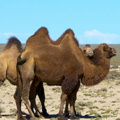 駱駝分為單峰駱駝和雙峰駱駝,前者多分布于蘇丹,索馬里等地區(qū),后者則多見于亞洲和較與涼爽的地方。駱駝是一種非常耐饑渴、高溫寒冷,性情溫順的動物,駱駝還具有合群性,種群居住,是以前干旱炎熱的沙漠地區(qū)不可以缺少的交通工具和運輸工具,距今已有1千3百萬年的存活歷史。