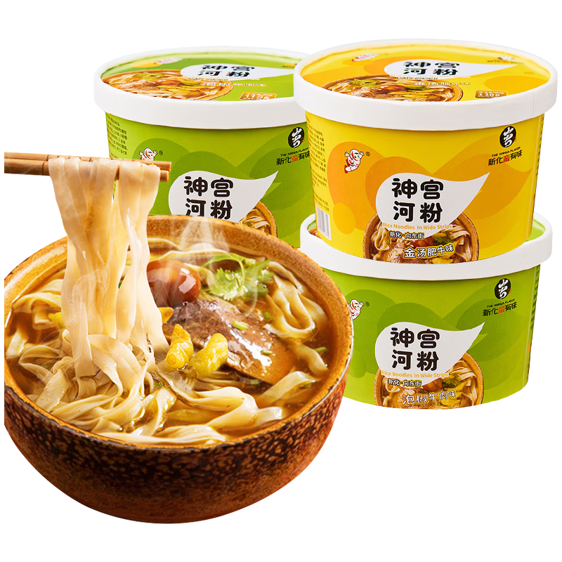新晉國潮米粉品牌,目前有泡椒牛肉味河粉、麻辣牛肉味河粉、炒河粉、金湯肥牛味河粉、新化黃精燉雞味河粉等多個系列, 嗦到之處皆開心,辣的狂歡而不止! 神宮河粉系列全渠道年均累計(jì)銷量2000萬桶+, 榮獲首屆湖南新化蠻有味網(wǎng)紅大賽一等獎,最佳優(yōu)選十大產(chǎn)品之一。